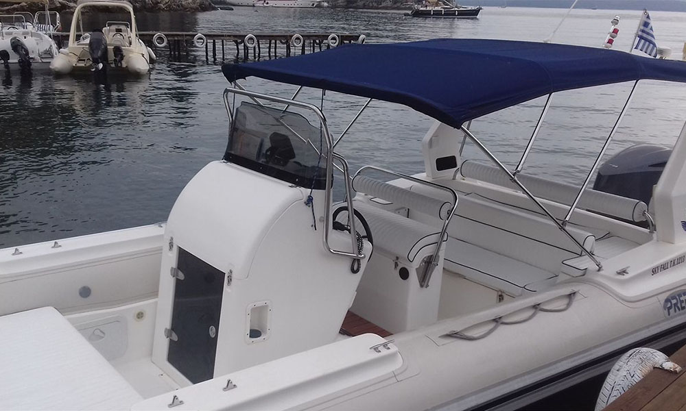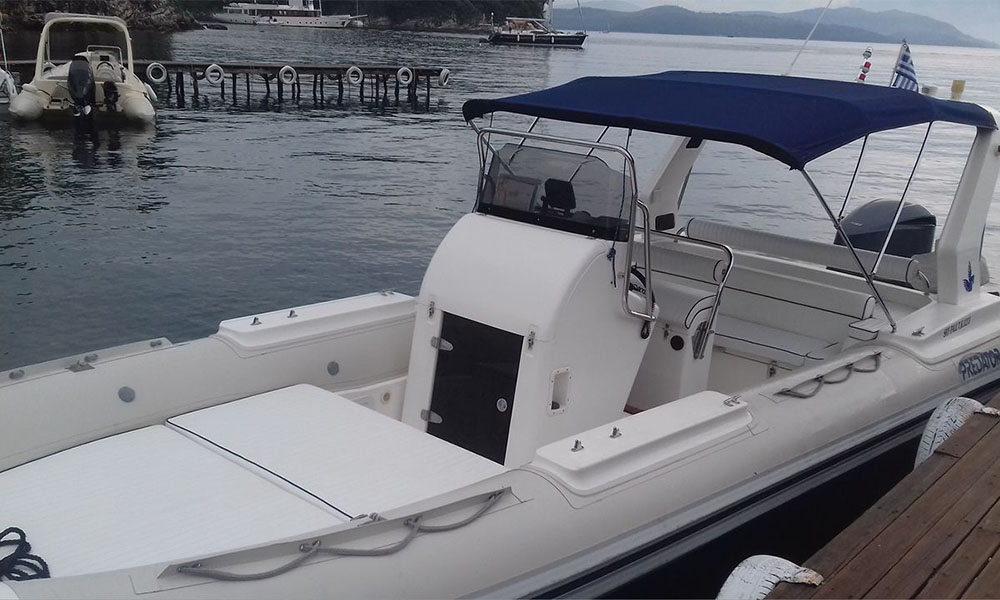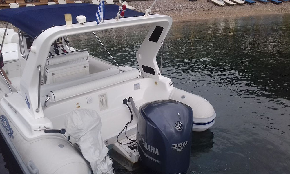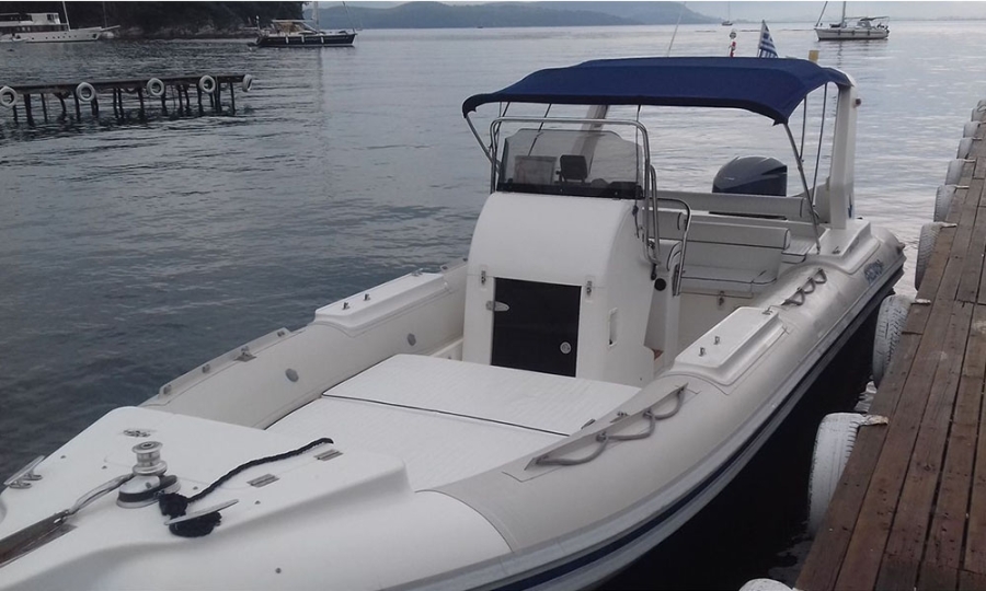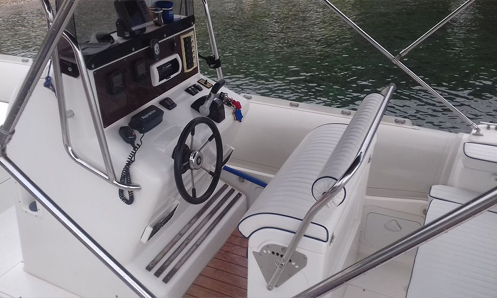 A new 8.5 m rib for those that has the experience for those boats and only and for regulars for 10 persons you can rent it with a captain with extra charge 150€.