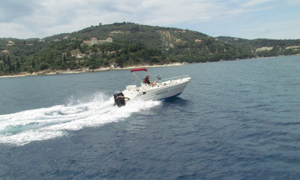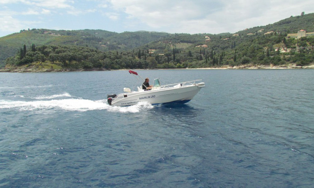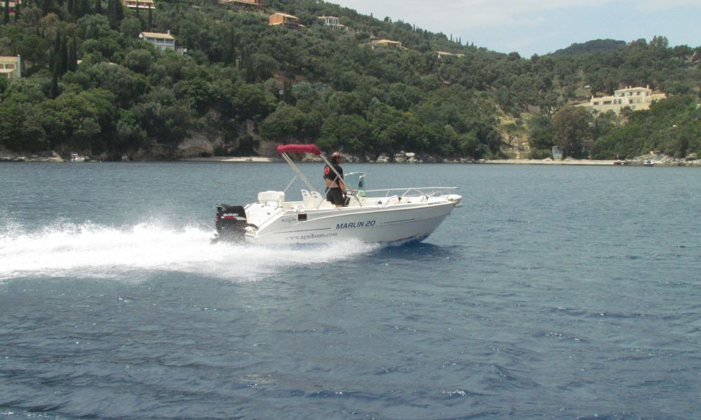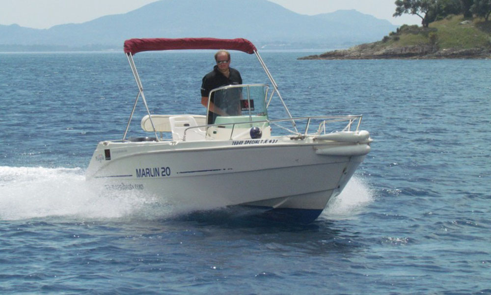 This boat is equipped with electric start, electric engine lift, padded trim, a sun canopy, a swimming ladder, navigation lights, safety equipment and a spare 5hp engine in case of emergencies. Furthermore, like our other boats, this rental is also checked by the local authorities before the season starts and is checked regularly between summer months.