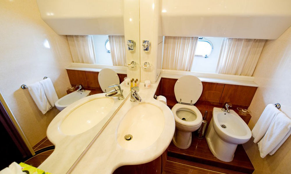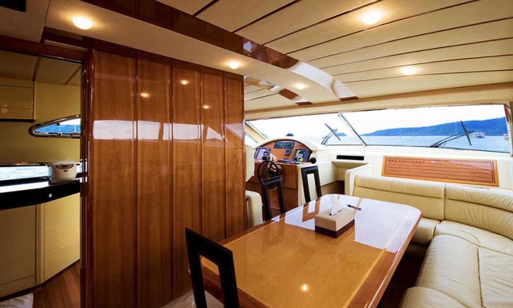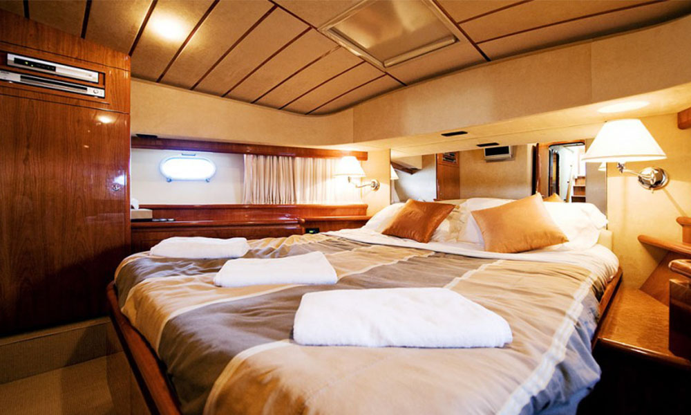 Volvere accommodates 8 people in a Master double cabin, a VIP Double Cabin, both with ensuite facilities and two twin cabins sharing common facilities. The luxury yacht has both inside and outside dining areas, plasma satellite TV, Audio and DVD entertainment in the luxury air conditioned salon, a Sun Deck, Galley and seperate crew quarters.